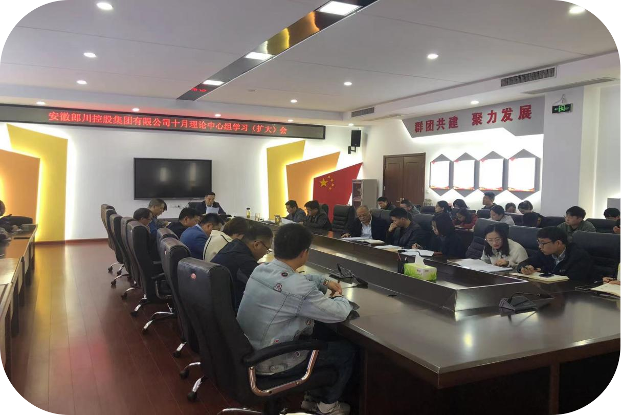 2022年10月28日,郎川控股集团召开党委理论学习中心组(扩大)学习会议暨党的二十大精神专题学习会,传达学习贯彻党的二十大和二十届一中全会精神。集团党委书记周道平同志主持会议,全体员工参加会议。